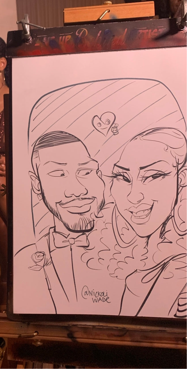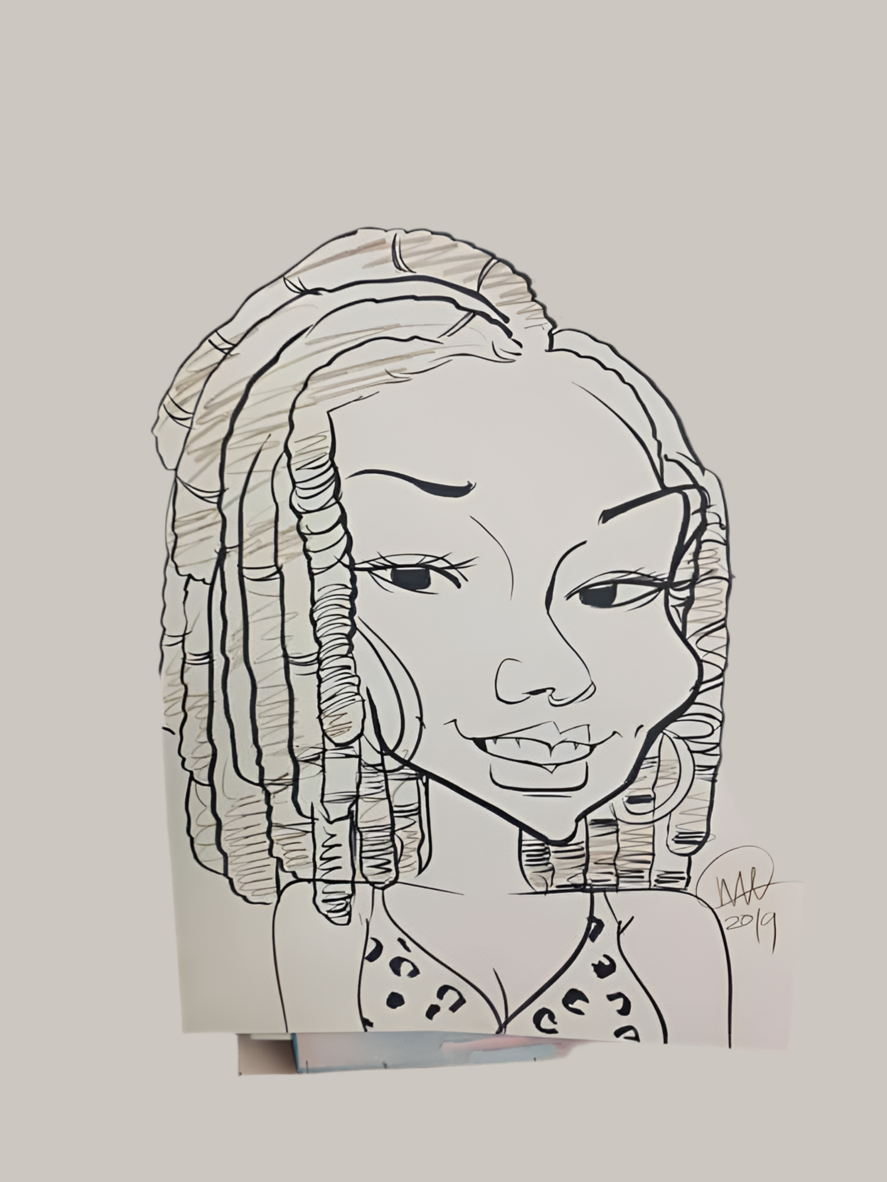 Black and White caricature done in Ink on 11 x 17 in. White cardstock